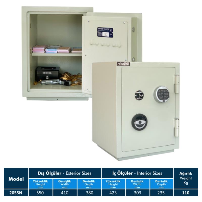 2055N KE Elektronik Ev ve Ofis Çelik Para Kasasının Teknik Özellikleri ;