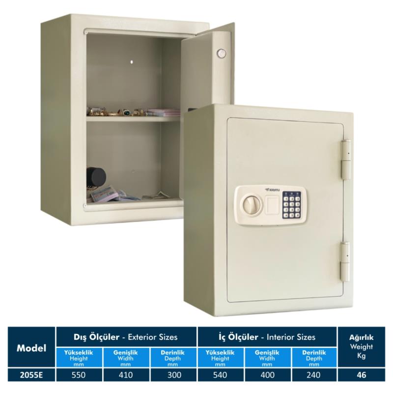 2055.E Model kasa statik toz boya ile boyanmıştır.